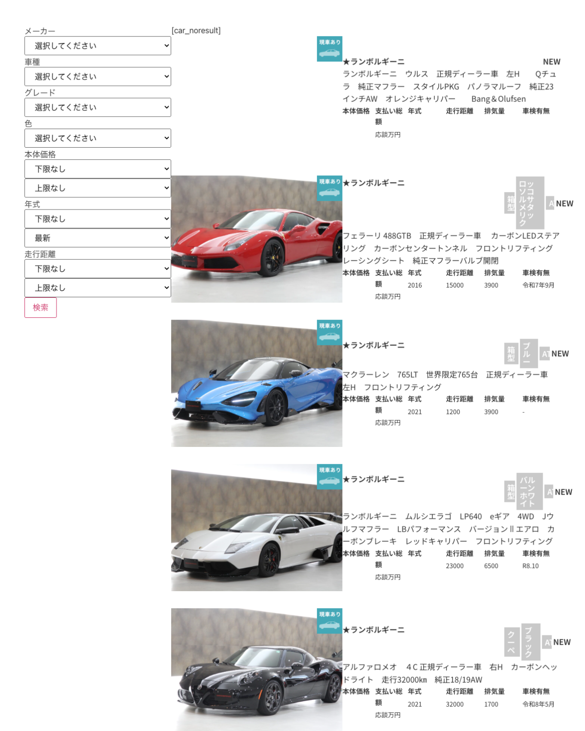 在庫車情報