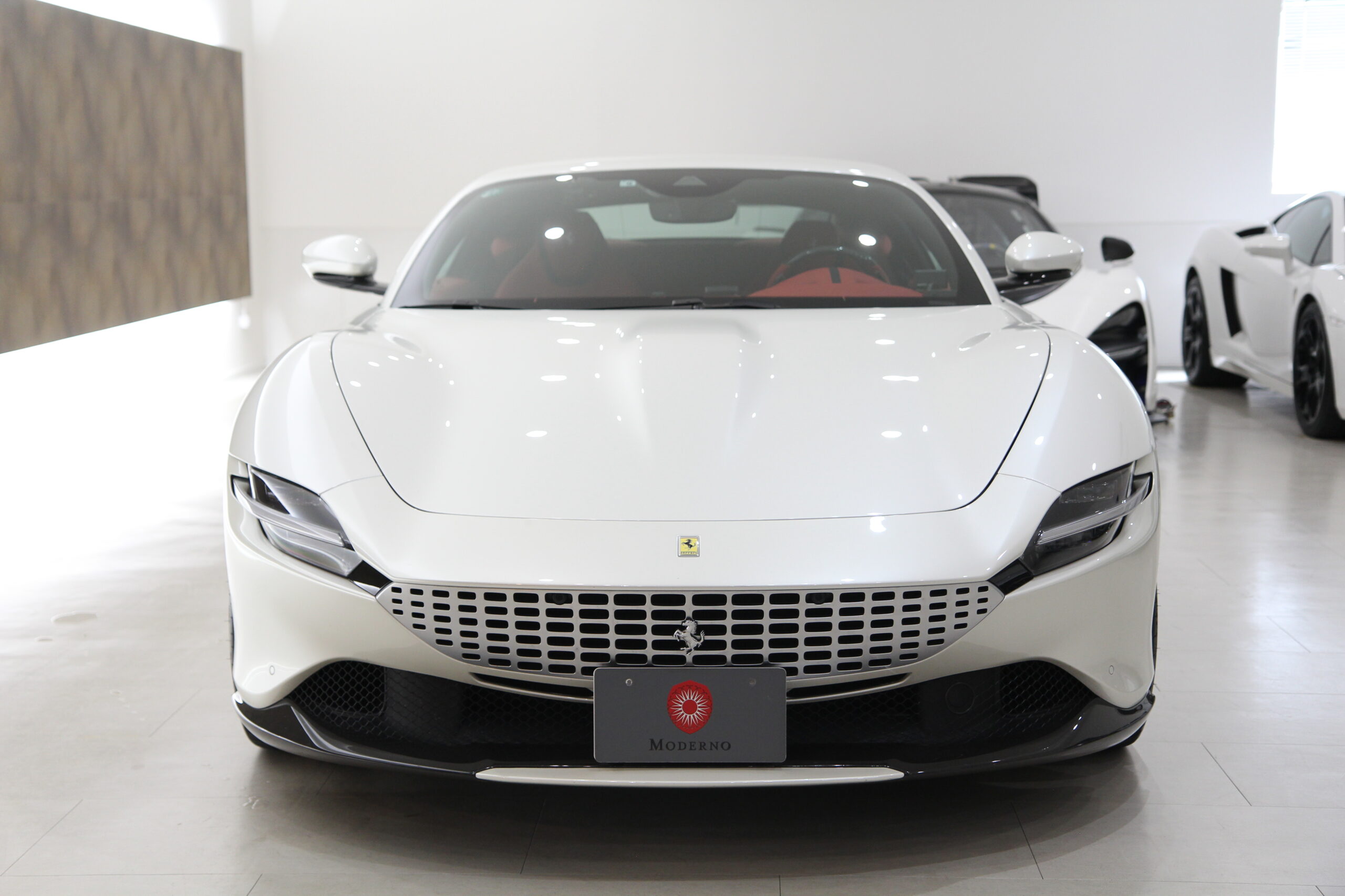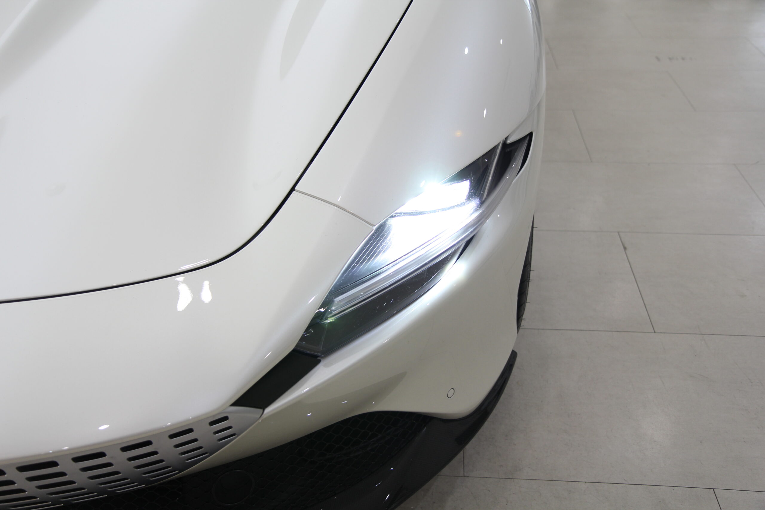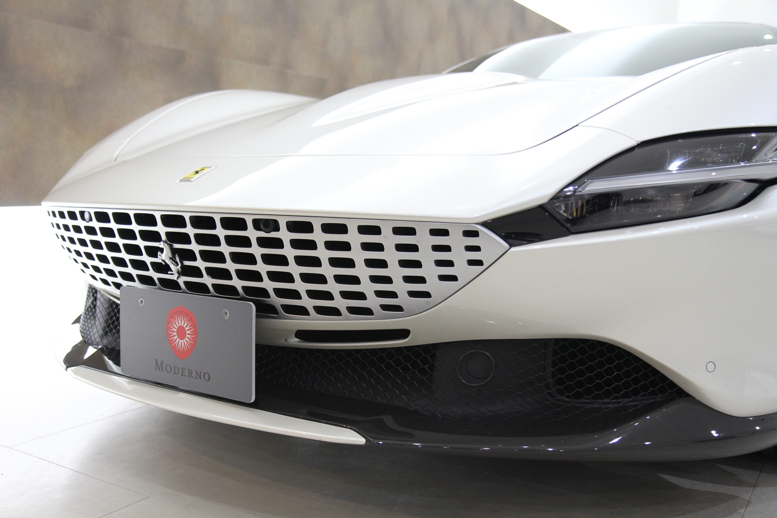 フェラーリ ローマ 正規ディーラー車 15000km 左H 特注OPカラービアンコフジ カーボンLEDステアリングカーボンリアディフューザー カーボンダッシュボード カーボンアウターシルカバー カーボンドアステップ カーボンアッパートンネルトリム カーボンフロントウィング