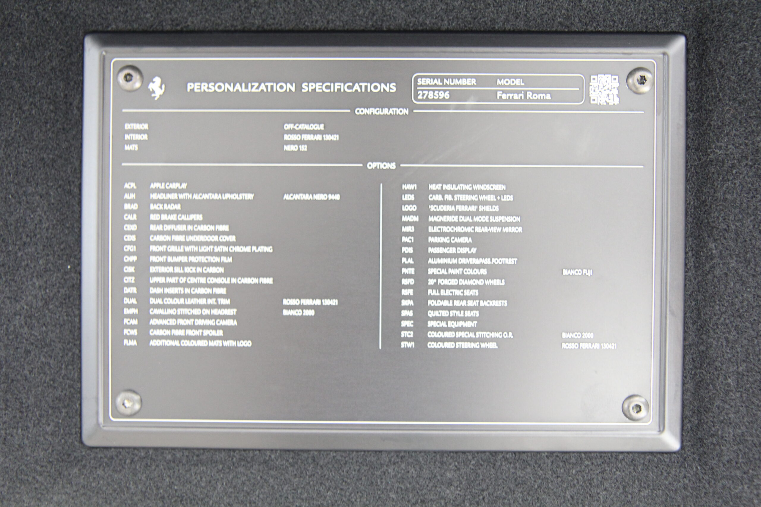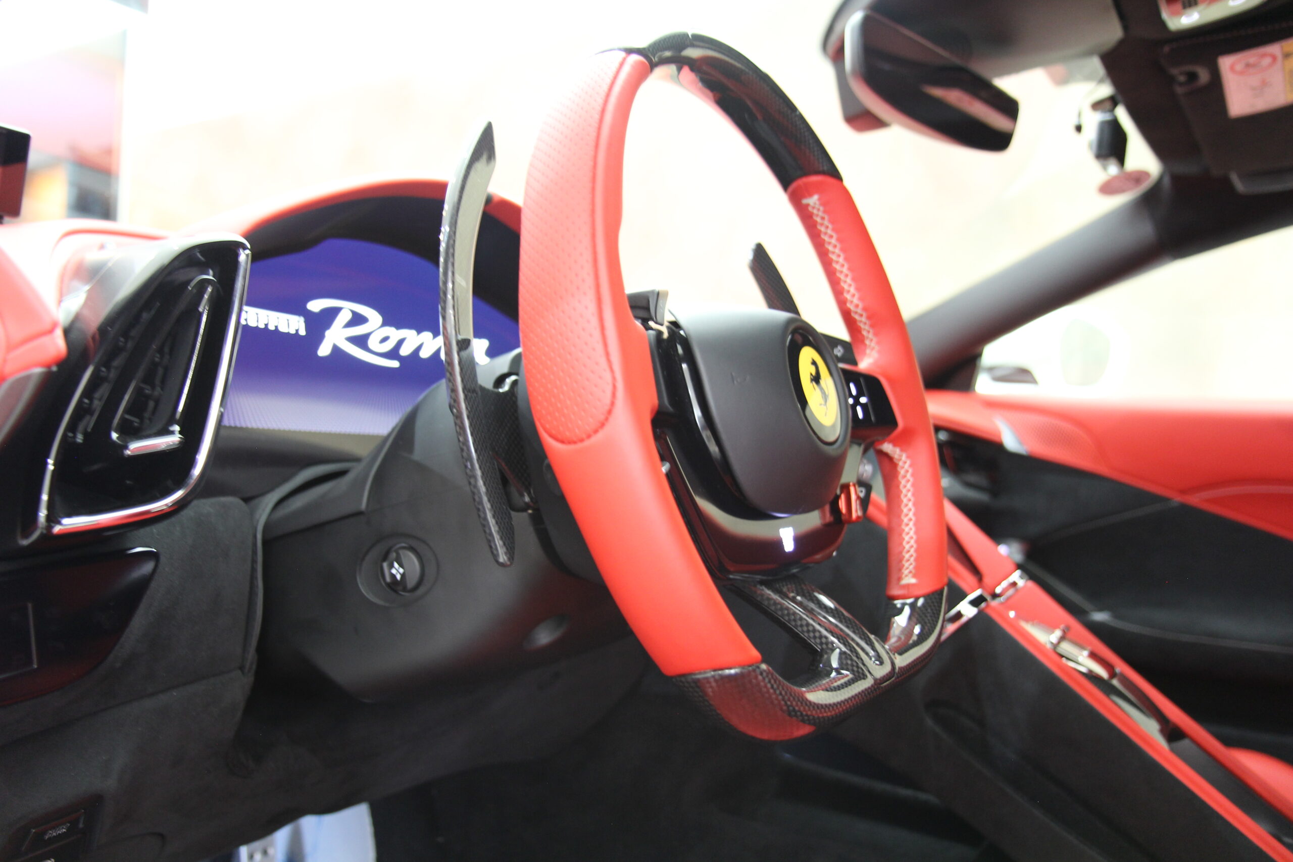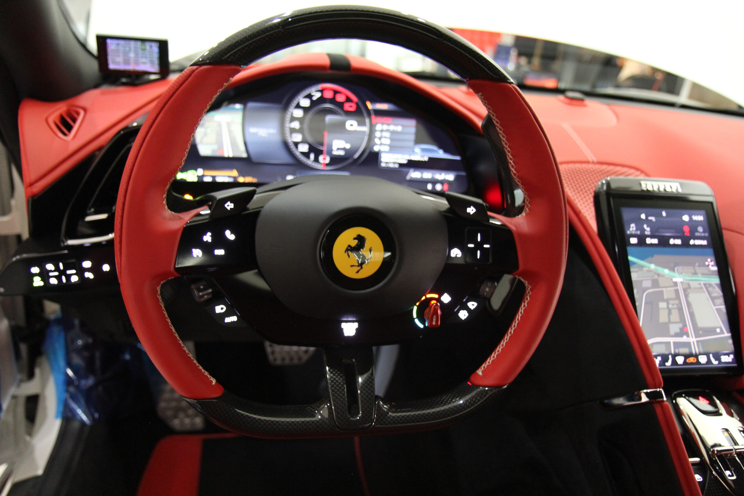 フェラーリ ローマ 正規ディーラー車 15000km 左H 特注OPカラービアンコフジ カーボンLEDステアリングカーボンリアディフューザー カーボンダッシュボード カーボンアウターシルカバー カーボンドアステップ カーボンアッパートンネルトリム カーボンフロントウィング