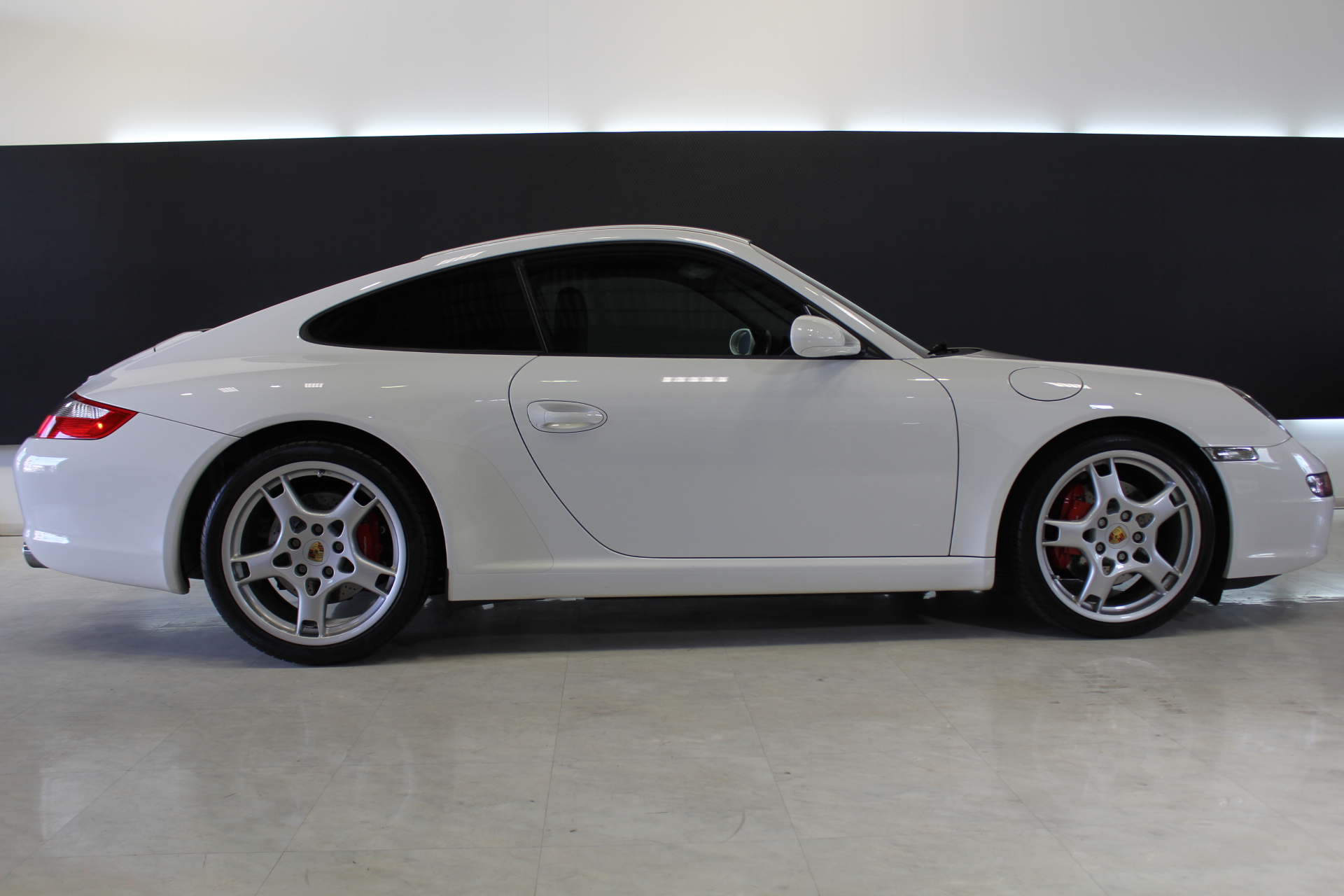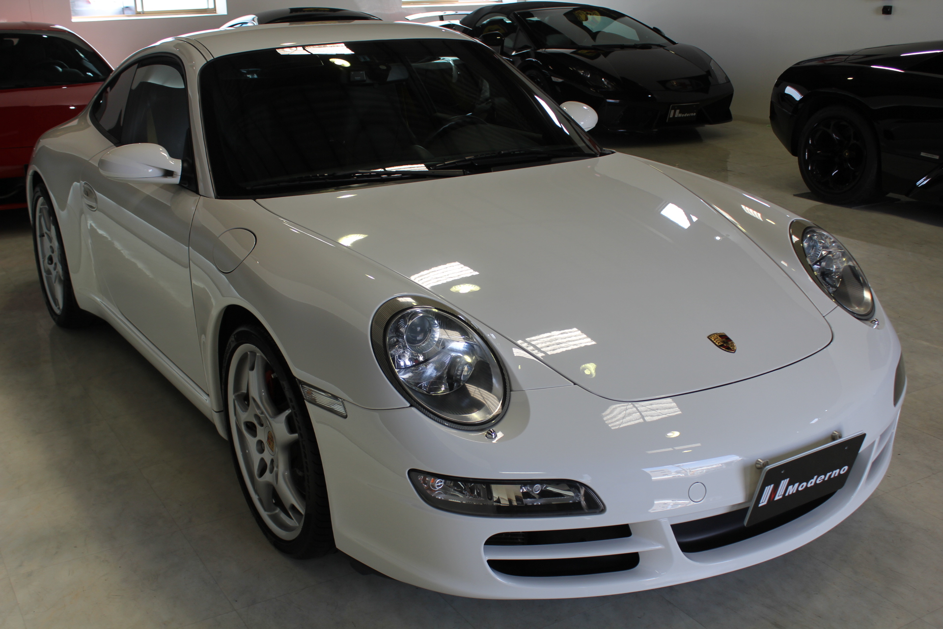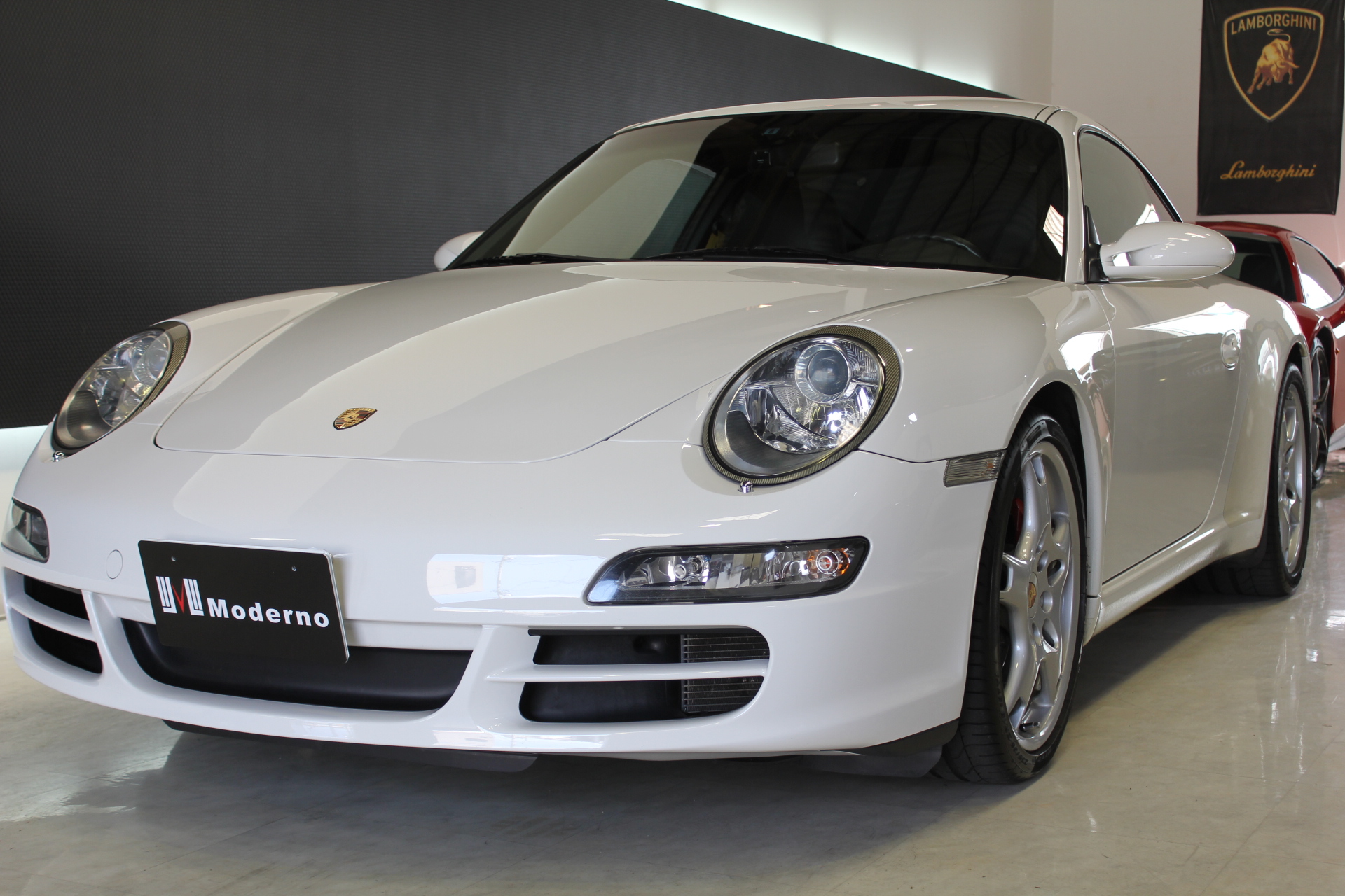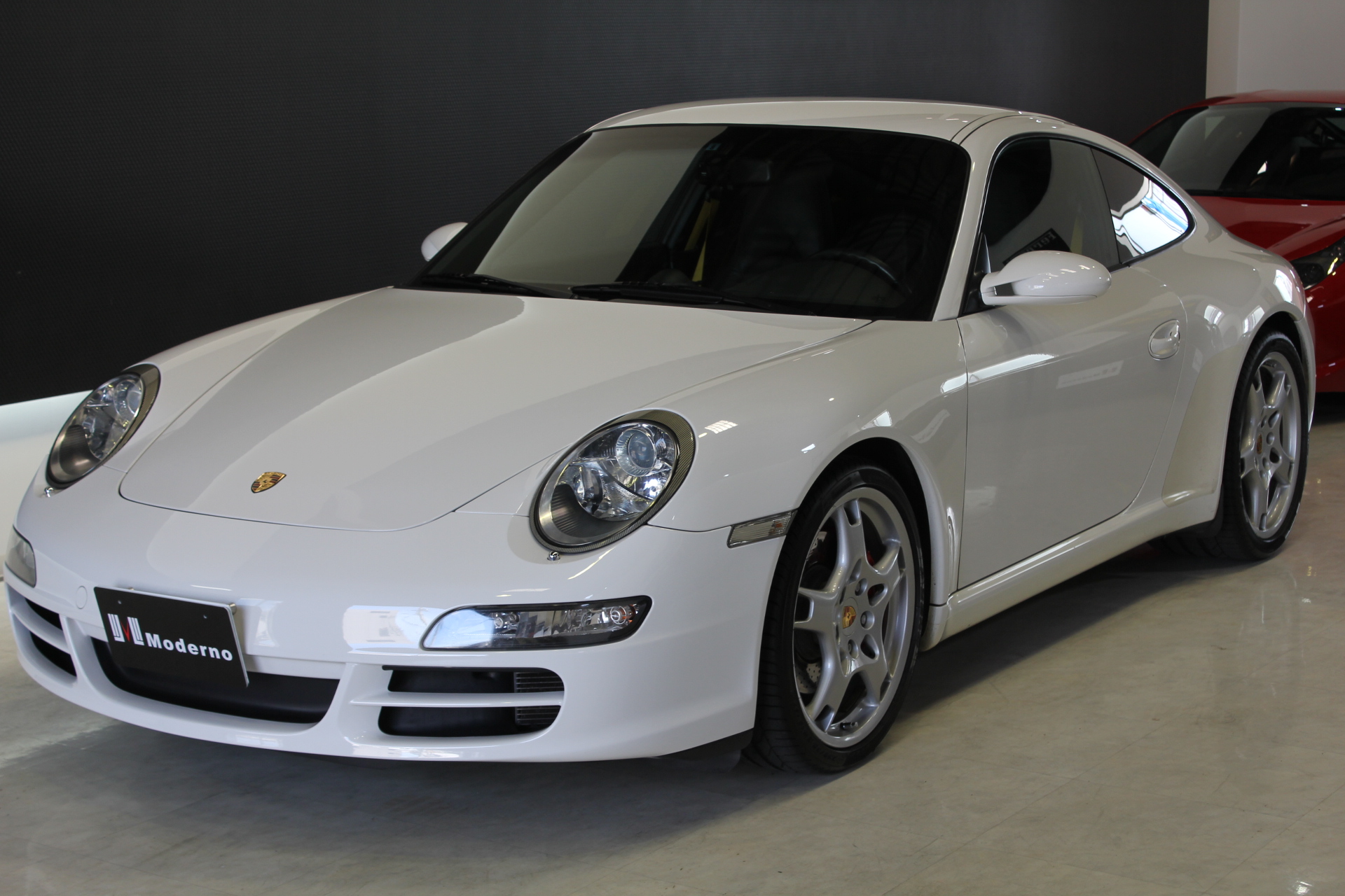 開発コード「997」型の「911カレラS」クーペモデルとなります。従来より外側に配置した、ティアドロップ(涙目)型から変更となった丸型ヘッドライト、デュアルアーム式のドアミラー、120km/hで自動的に展開し、80km/h以下で通常状態に復帰するリヤスポイラーが特徴的で、355馬力を発生する3.8L 水平対向エンジンを搭載しています。 ポルシェスタビリティマネージメント(PSM)には、フルブレーキングにブレーキパッドとブレーキディスク間のエアギャップを狭めることにより、制動距離を短縮するプレチャージ機能と、ブレーキの踏力が十分でない場合には、油圧ポンプが自動的に追加の圧力を補うことにより、すべてのホイールをABS制御域に引き上げ、最適な制動力を確保する2つの新しい機能が加わる。PASM(=Porsche Active Suspension Management)アクティブサスペンションは、ノーマルに加え、スポーツを選択するとサスペンションがハードな設定となり、一段と機敏でスポーティーな走りをサポート。 世界で初めて標準装備として取り入れたヘッドエアバッグは、側面衝突にフロントシート バックレストのソラックスバッグと同時に作動。ヘッドエアバックを含めた、合計6個のエアバッグにより、911は極めて高いパッシブセーフティを実現しています。