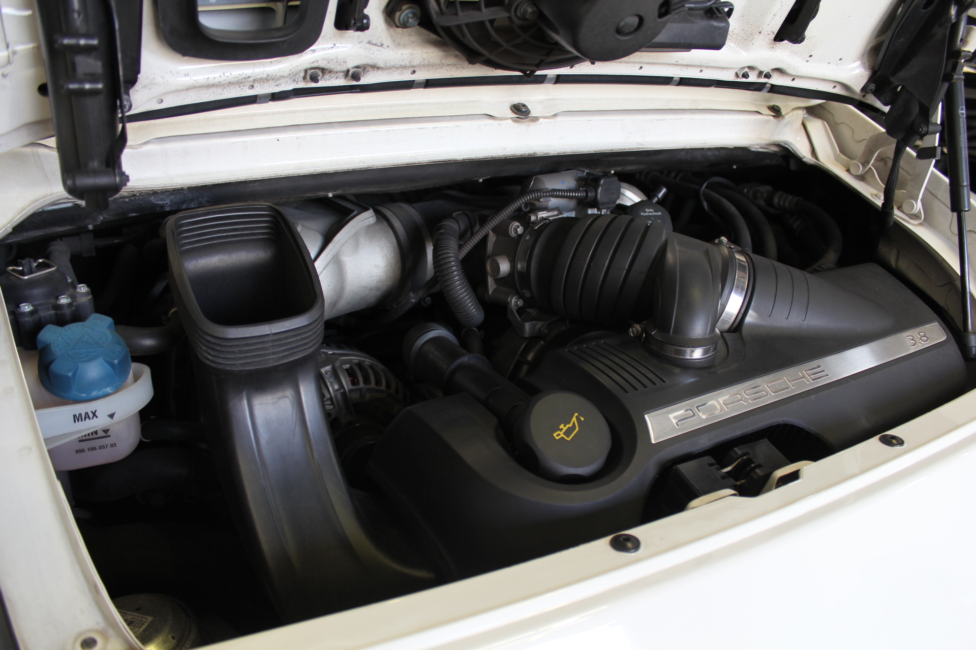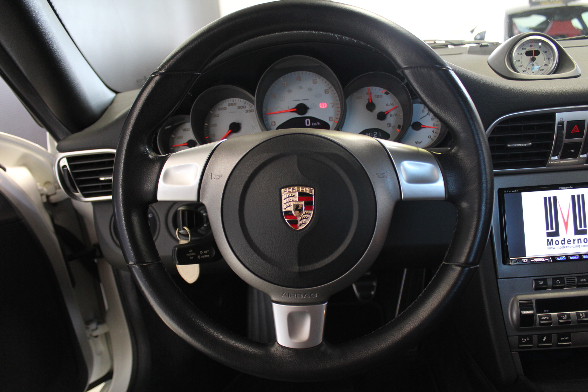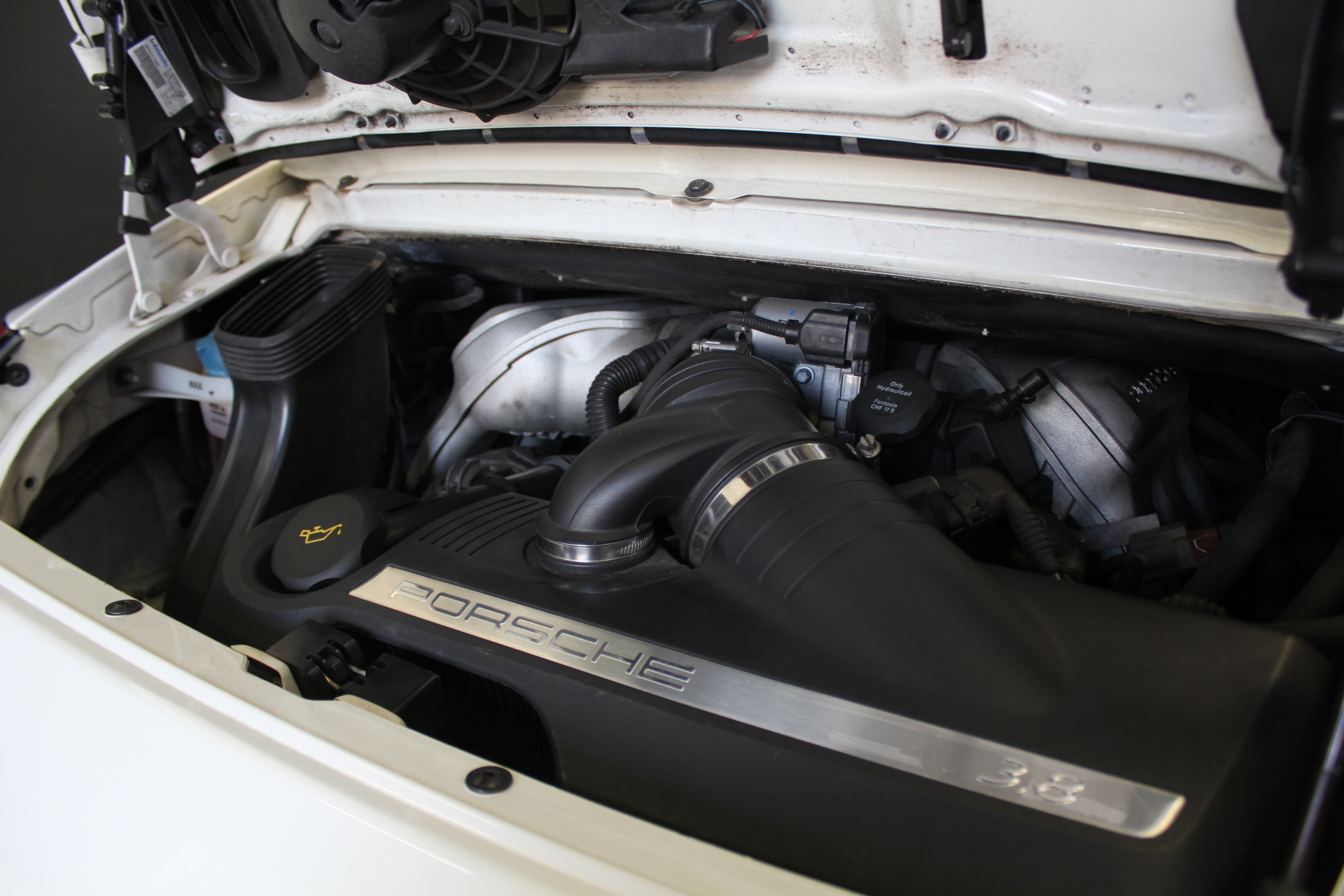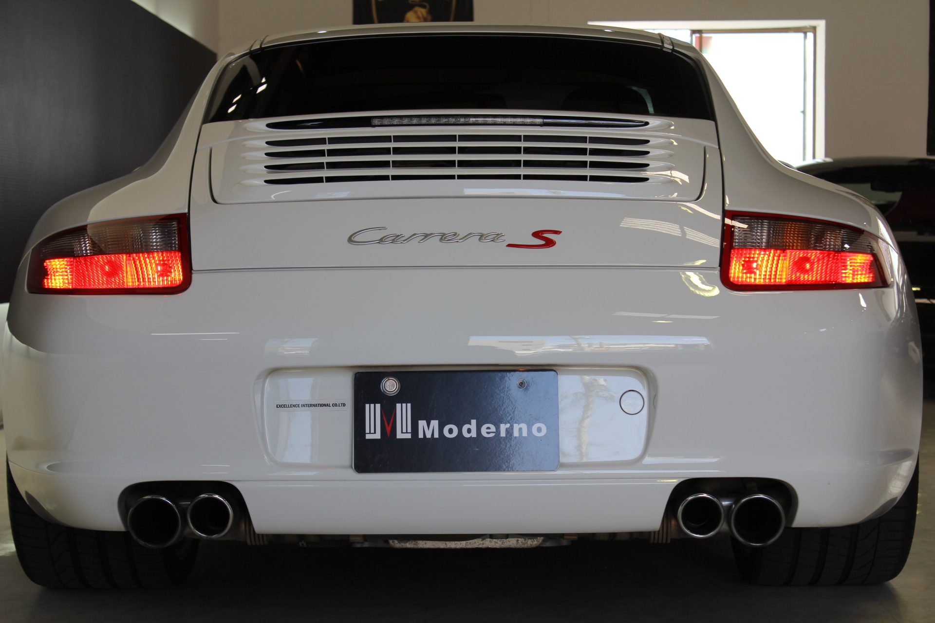 開発コード「997」型の「911カレラS」クーペモデルとなります。従来より外側に配置した、ティアドロップ(涙目)型から変更となった丸型ヘッドライト、デュアルアーム式のドアミラー、120km/hで自動的に展開し、80km/h以下で通常状態に復帰するリヤスポイラーが特徴的で、355馬力を発生する3.8L 水平対向エンジンを搭載しています。 ポルシェスタビリティマネージメント(PSM)には、フルブレーキングにブレーキパッドとブレーキディスク間のエアギャップを狭めることにより、制動距離を短縮するプレチャージ機能と、ブレーキの踏力が十分でない場合には、油圧ポンプが自動的に追加の圧力を補うことにより、すべてのホイールをABS制御域に引き上げ、最適な制動力を確保する2つの新しい機能が加わる。PASM(=Porsche Active Suspension Management)アクティブサスペンションは、ノーマルに加え、スポーツを選択するとサスペンションがハードな設定となり、一段と機敏でスポーティーな走りをサポート。 世界で初めて標準装備として取り入れたヘッドエアバッグは、側面衝突にフロントシート バックレストのソラックスバッグと同時に作動。ヘッドエアバックを含めた、合計6個のエアバッグにより、911は極めて高いパッシブセーフティを実現しています。